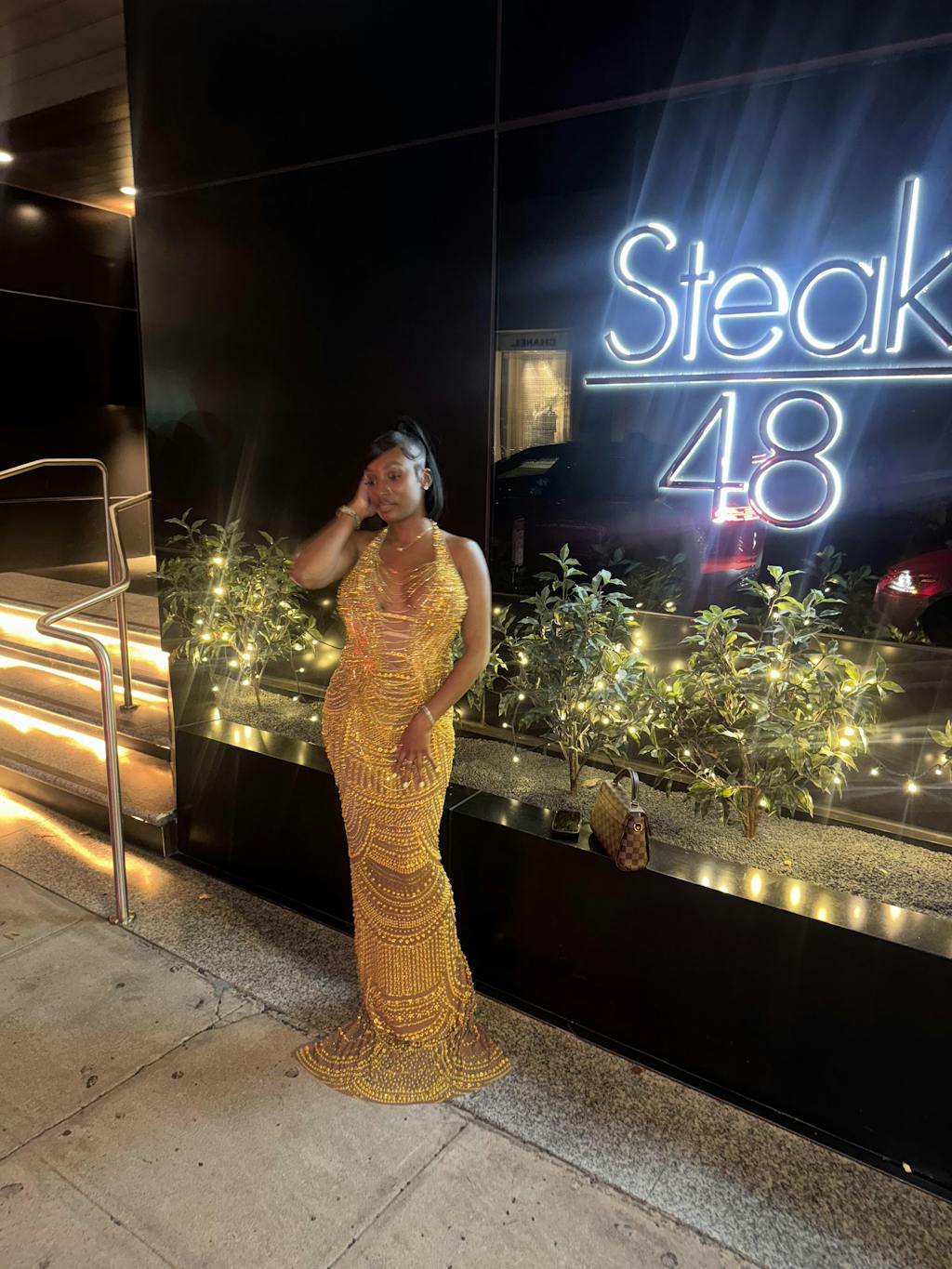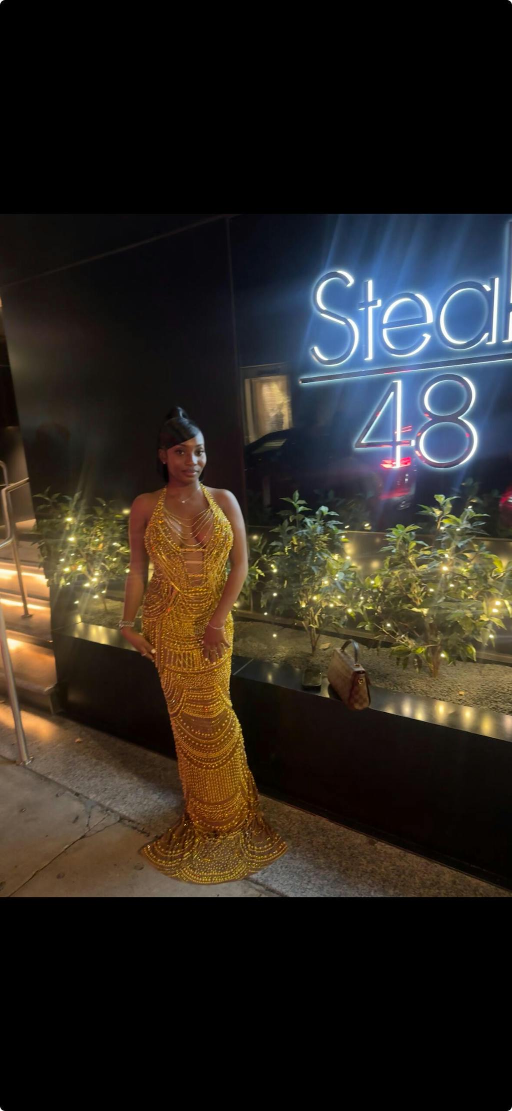 Elevate your evening with the 'Midas Touch Maxi', a sophisticated mesh gown featuring exquisite gold adornments and delicate tassels accented by shimmering gems throughout. The elegant halter neckline enhances its graceful silhouette, making it a stunning choice for any formal occasion.